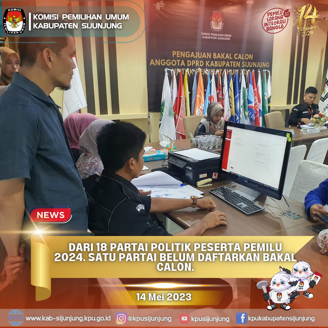 Dari 18 Partai Politik Peserta Pemilu 2024. Satu Partai Belum Daftarkan Bakal Calon.