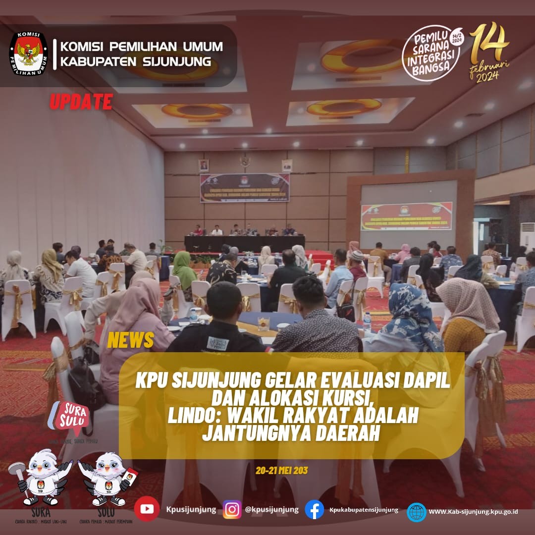 “Ini amanat dari KPU RI terkait dengan pelaksanaan dan evaluasi penetapan alokasi kursi yang sudah berupa PKPU,” ujarnya. Lindo juga melihat penetapan jumlah kursi DPRD Kabupaten Sijunjung disesuaikan dengan jumlah penduduk yang ada.