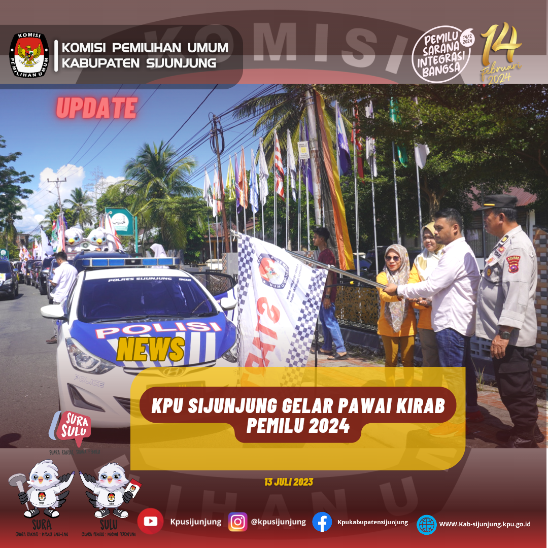 Pawai Kirab Pemilu dimulai dari kantor KPU Kabupaten Sijunjung dan dilepas Oleh Anggota KPU Kabupaten Sijunjung Bayu Agung Perdana Ketua Divisi Hukum dan Pengawasan yang di dampingi Oleh Susila Andica Ketua Divisi Teknis Penyelenggaraan dan Ria Meilani Ketua Divisi Perencanaan, Data dan Informasi.