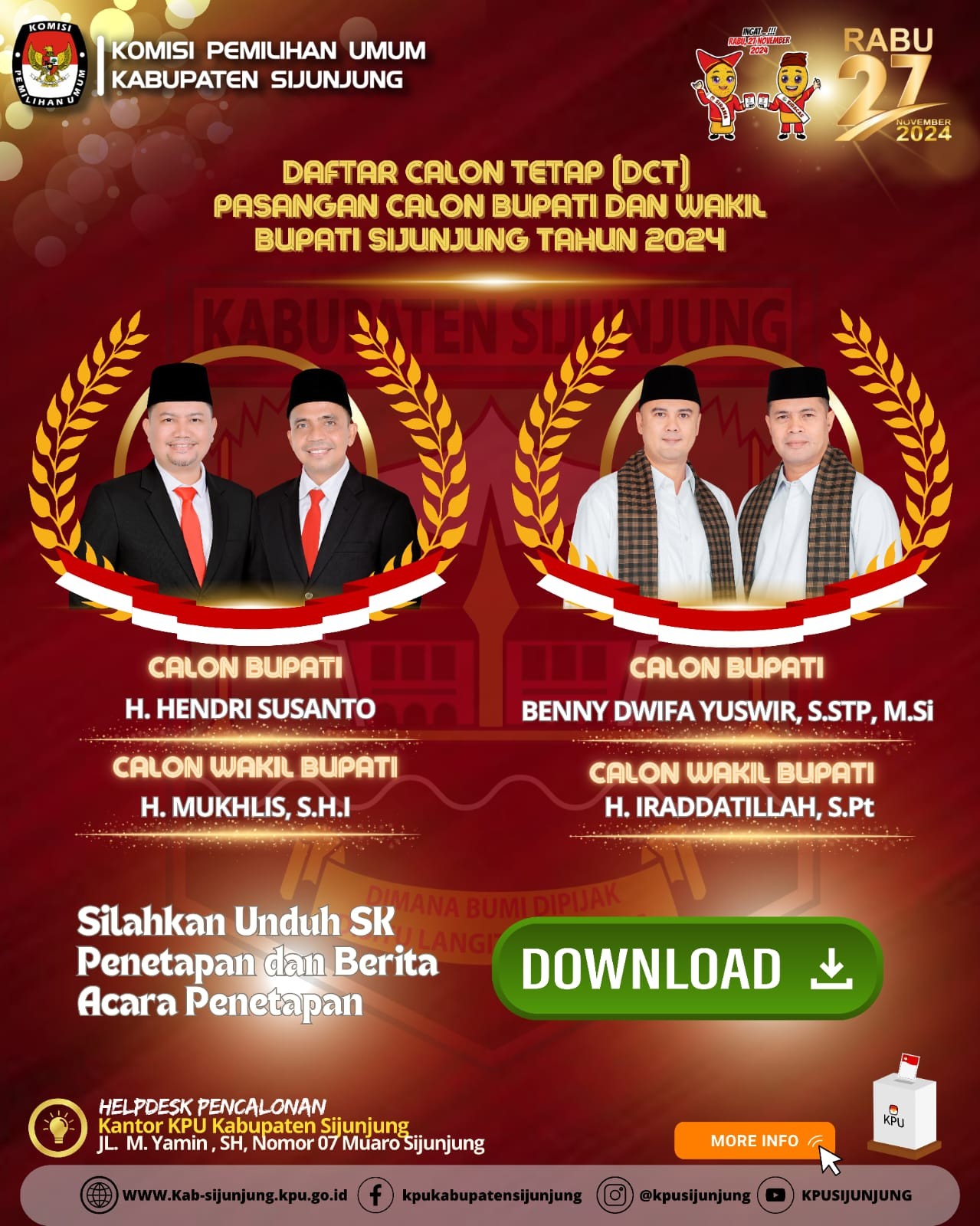 PENETAPAN PASANGAN CALON BUPATI DAN WAKIL BUPATI SIJUNJUNG PESERTA PEMILIHAN BUPATI DAN WAKIL BUPATI KABUPATEN SIJUNJUNG TAHUN 2024