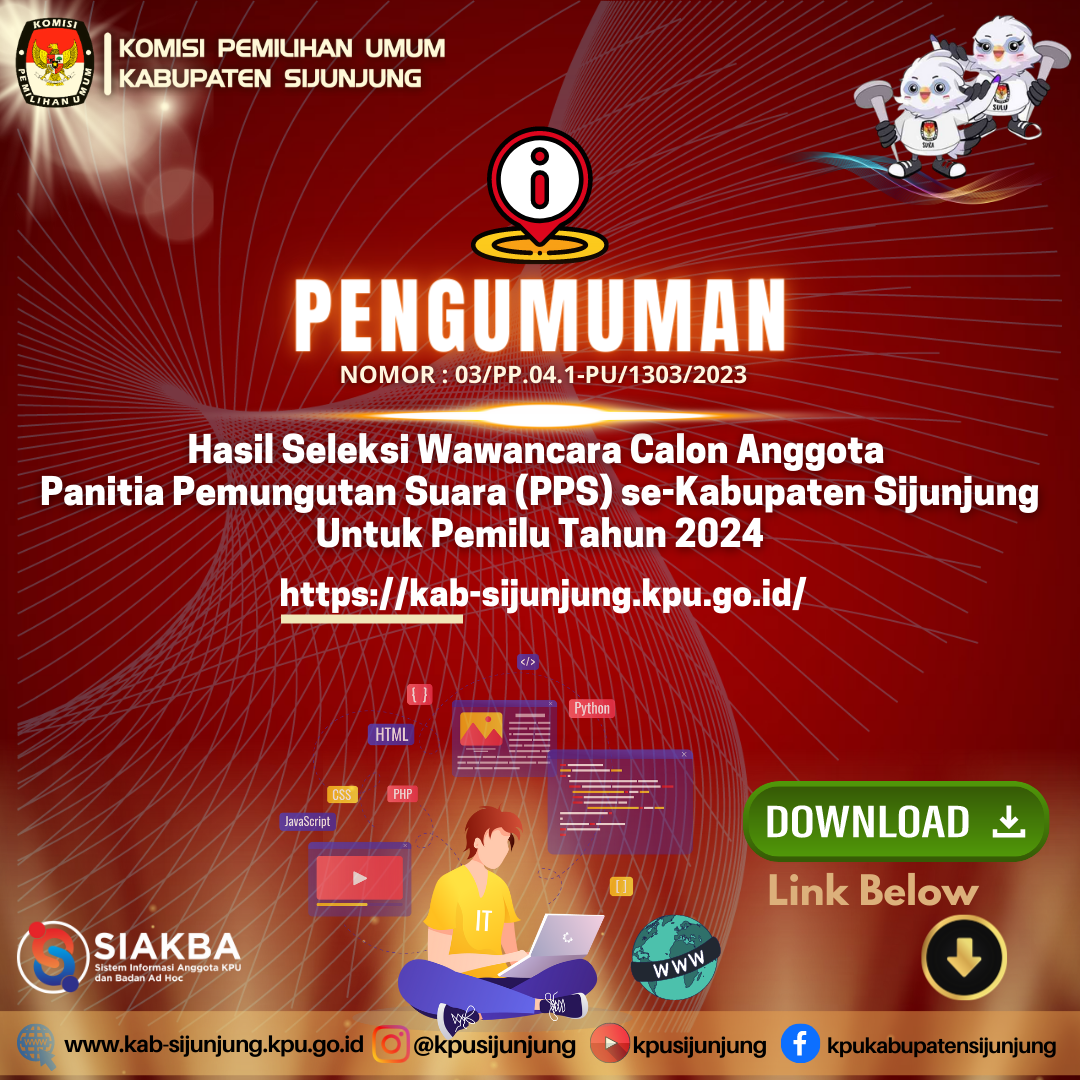 PENGUMUMAN HASIL SELEKSI WAWANCARA CALON ANGGOTA PPS SE-KABUPATEN SIJUNJUNG UNTUK PEMILU TAHUN 2024