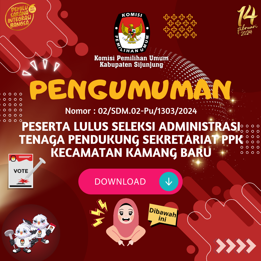 PENGUMUMAN PESERTA LULUS SELEKSI ADMINISTRASI TENAGA PENDUKUNG SEKRETARIAT PPK KAMANG BARU