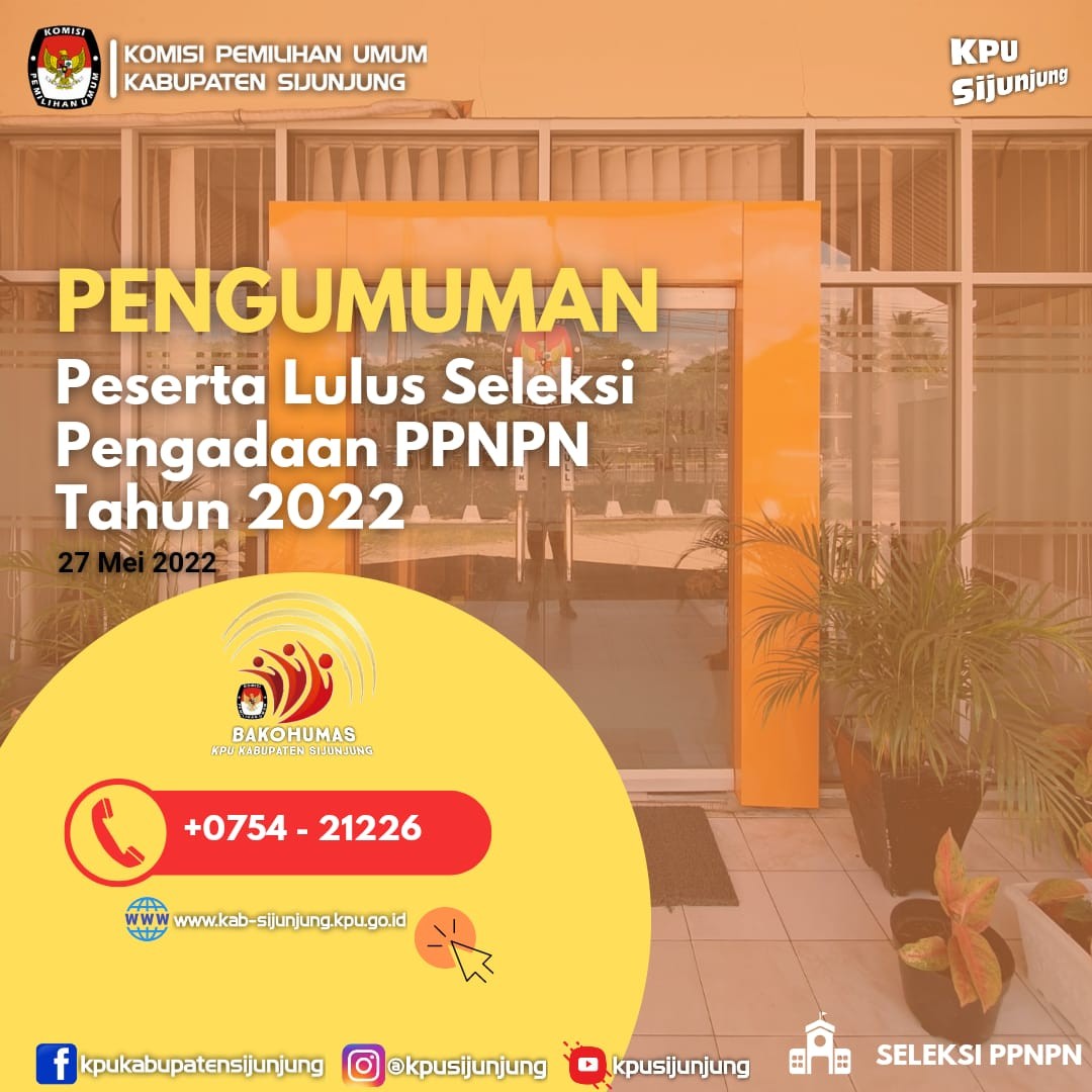 PENGUMUMAN NOMOR: 4/SDM.02.1-Pu/13/2022 TENTANG PESERTA LULUS SELEKSI DALAM RANGKA PENGADAAN PEGAWAI PEMERINTAH NON PEGAWAI NEGERI (PPNPN) PADA SEKRETARIAT KPU PROVINSI DAN SEKRETARIAT KPU KABUPATEN/KOTA DI PROVINSI SUMATERA BARAT TAHUN 2022