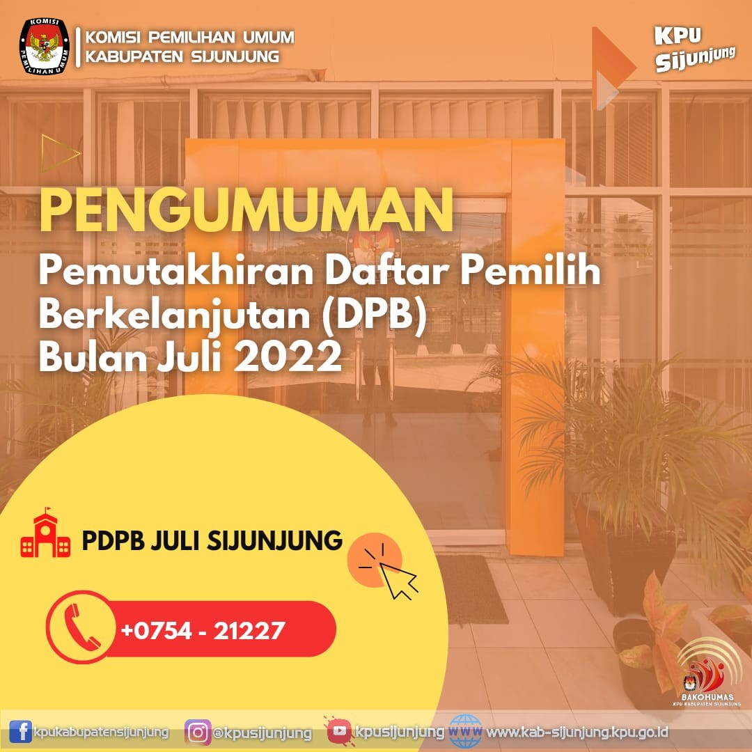 Muaro - KPU Kabupaten Sijunjung telah menetapkan Pemutakhiran Daftar Pemilih Berkelanjutan (DPB) Bulan Juli 2022 melalui rapat pleno pada hari Kamis (28/7) 2022. Penetapan DPB Bulan Juli tersebut dituangkan dalam Berita Acara yang dapat di Download pada tautan dibawah ini :