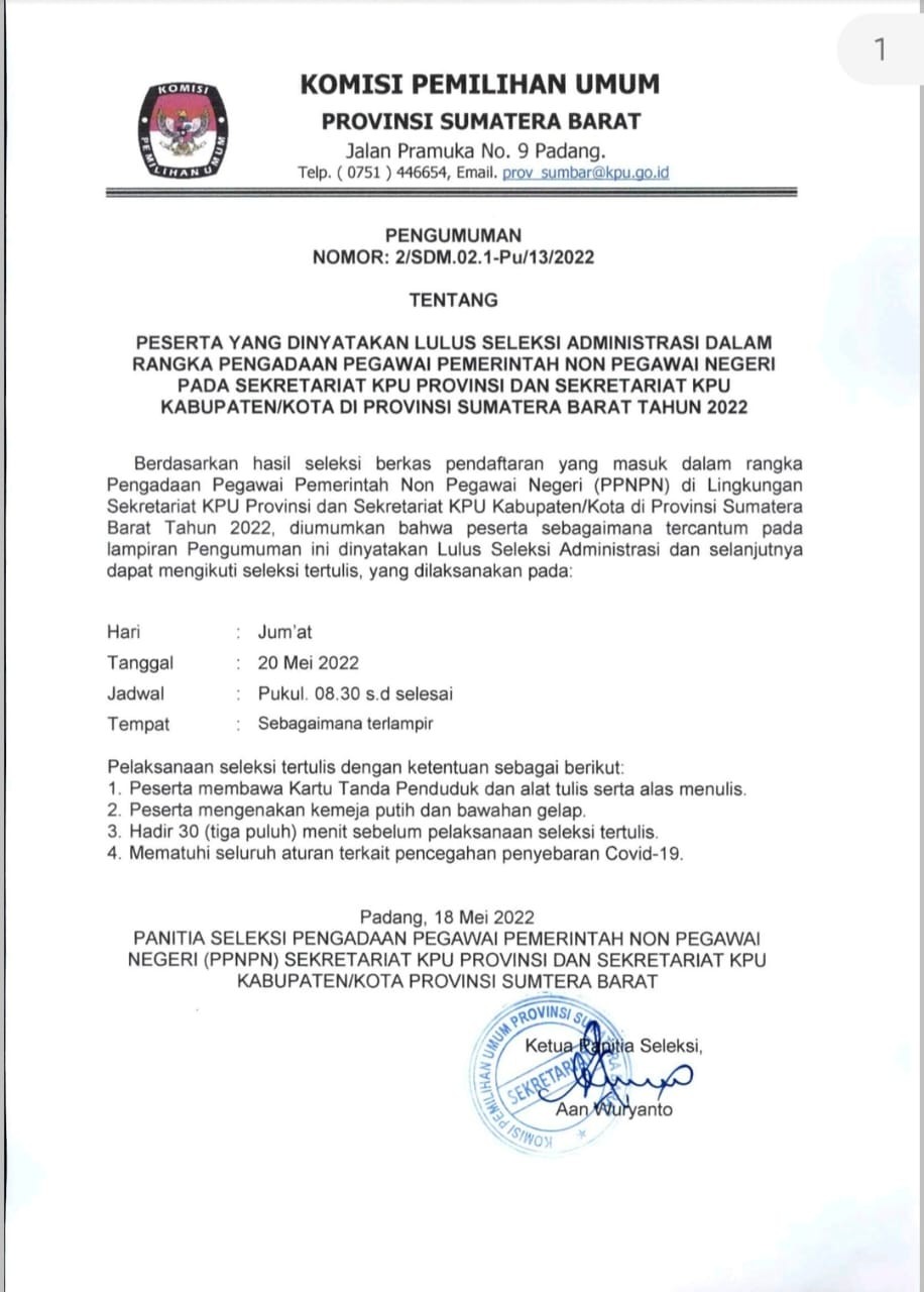 BERIKUT DIUMUMKAN CALON PPNPN YANG LULUS SELEKSI ADMINISTRASI
