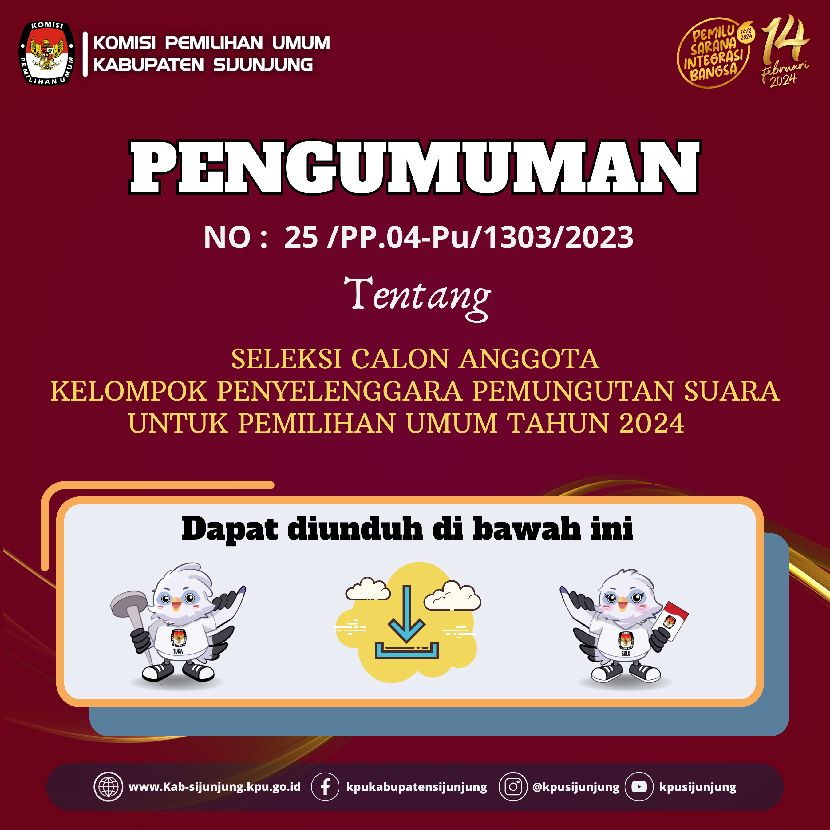PENGUMUMAN SELEKSI CALON ANGGOTA KPPS UNTUK PEMILU TAHUN 2024 DI KABUPATEN SIJUNJUNG
