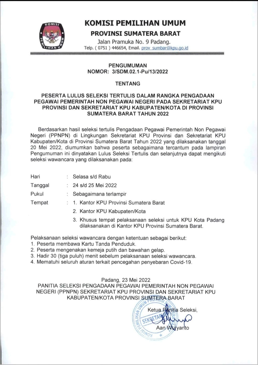 PENGUMUMAN HASIL SELEKSI TERTULIS PPNPN