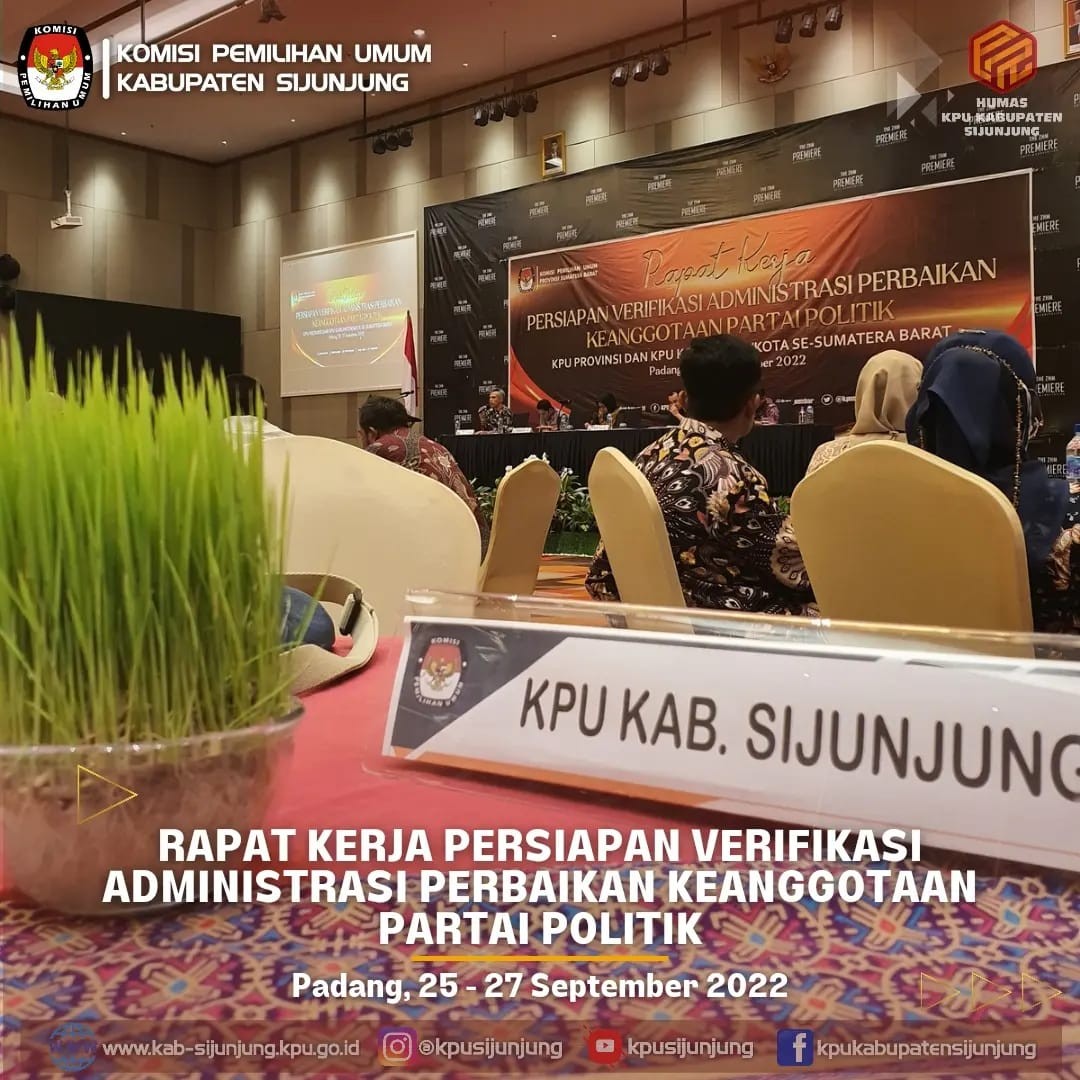 KPU Kab. Sijunjung sebagai undangan, ikut serta pada raker tersebut dengan diwakili oleh, Nafwan, S. IKom Ketua Div. Sosdiklihparmas (mewakili ketua), Gunawan, SP Ketua Div. Teknis Penyelenggaraan, Irzal Zamzami, S.Sos, M.Si, Selaku Sekretaris KPU Kab. Sijunjung, Istikharah, S.Kom, M.Si Kasubag Teknis Parhubmas serta, Viko Darma, SH Selaku Admin/Operator Sipol KPU Kab. Sijunjung.