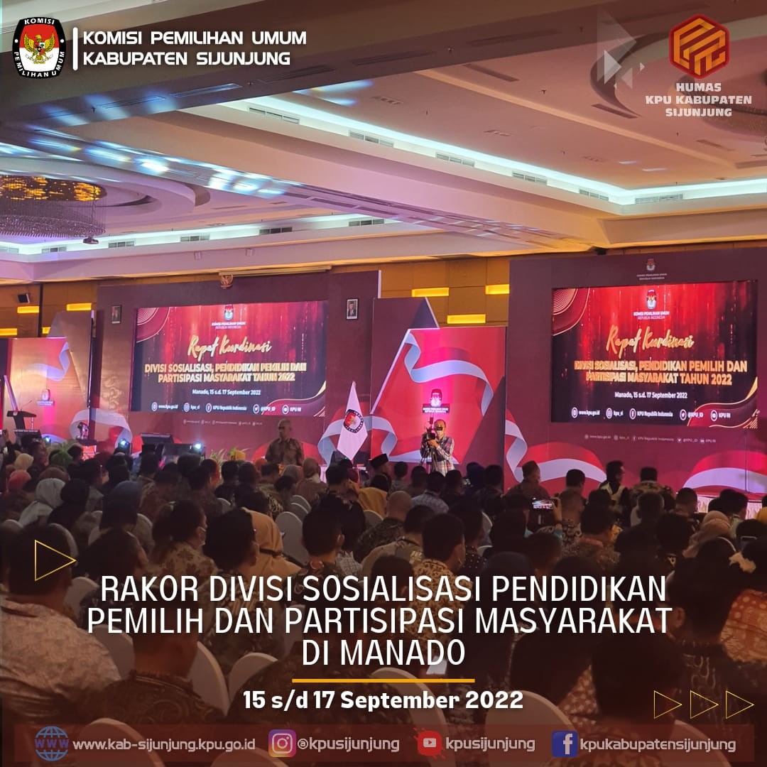 Komisi Pemilihan Umum Republik Indonesia menyelenggarakan Rakor Divisi Pendidikan Pemilih dan Partisipasi Masyarakat (sosdiklihparmas) di Manado Sulawesi Utara, tanggal 15 s/d 17 September 2022.
