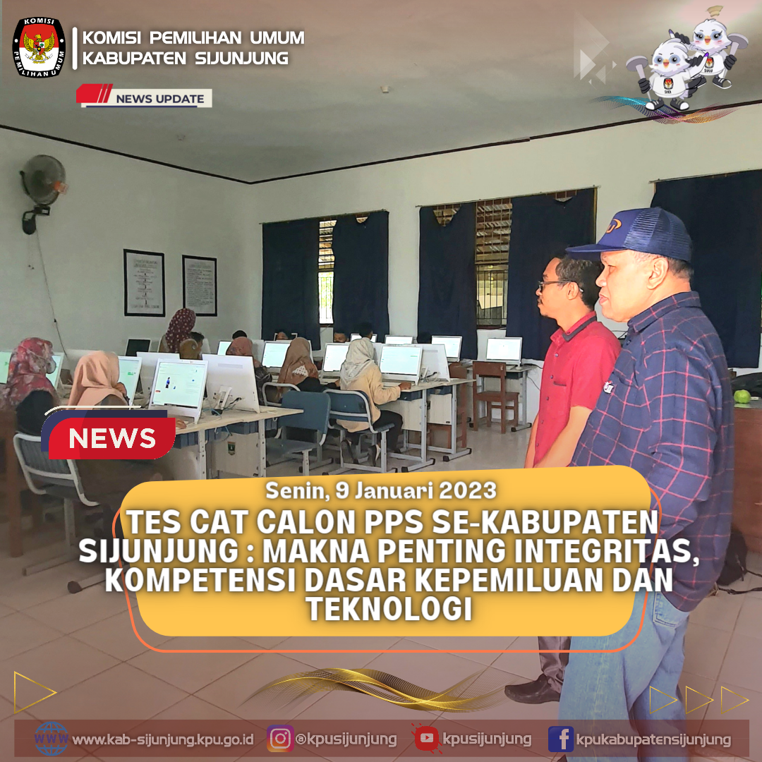 Ketua Divisi Sosdiklih Parmas dan SDM KPU Kabupaten Sijunjung, Nafwan, S.Ikom menyampaikan bahwa pelaksanaan tes di enam tempat berjalan tertib dan lancar serta waktu pelaksaan berjalan sesuai dengan jadwal yang telah ditetapkan sebelumnya dalam pengumuman Hasil Seleksi Administrasi. Hal penting selain kompetensi dasar kepemiluan, dilaksanakannya tes menggunakan sistem CAT ini adalah upaya mencari peserta seleksi calon PPS yang mampuni dalam bidang teknologi/komputerisasi, karena akan menunjang pekerjaan/beban tanggungjawab penyelenggaraan Pemilu serentak Tahun 2024, tentunya "Integritas tetap menjadi hal yang paling penting" ujarnya.